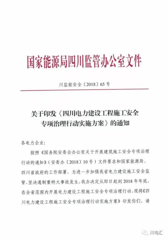 安全生產(chǎn)】關(guān)于印發(fā)《四川電力建設(shè)工程施工安全專項(xiàng)治理行動(dòng)實(shí)施方案》的通知