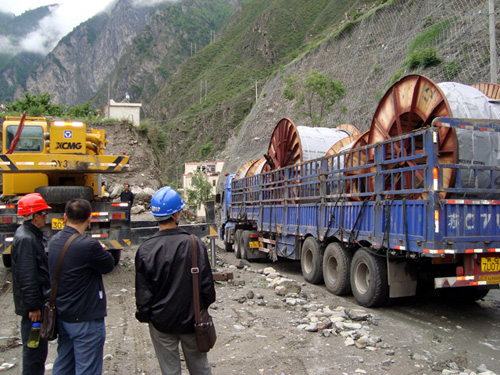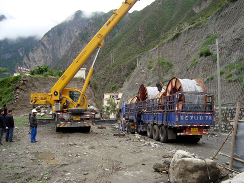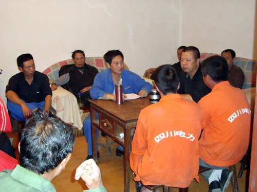 2011年6月6日四川省強波電力工程有限公司董事長孫波先生與公司主要負責人一行驅車前往汶川,理縣看望戰斗在施工現場的員工,2011年5月公司承建的理縣城網改造工程正緊鑼密布夜以繼日加班加點的緊張施工,此次工程項目主要是通過變電站出線(采用YJV22 3ⅹ300)高壓主電纜,開挖電纜溝,設置電纜井3KM,從老城區跨江到新城進入環網保護柜然后從環網柜出線到電纜分支箱,進入箱式變壓器,現對主城區主要街道,景點,新上400KVA箱變12臺,工程投資500多萬元,城市電網的改造意義重大,改造后將對理縣人民的生活用電,工業生產的用電質量得到大大提高,長遠于未來是一件民心工程,造福的工程,強波公司十分重視工程的建設,抽調了公司的精兵強將,制定了各項措施,確保工程,保質,保量順利竣工,孫總仔細檢查了工地的施工情況和存在的安全隱患,特別是跨江放線的施工組織措施,當天進行了預演,對存在的問題提出了整改通知,晚上孫總與工地員工一起吃粽子共度端午節,工地員工大受鼓舞和感動。大家都決心一定要保質,保量提前完成任務,不辜負公司的希望。