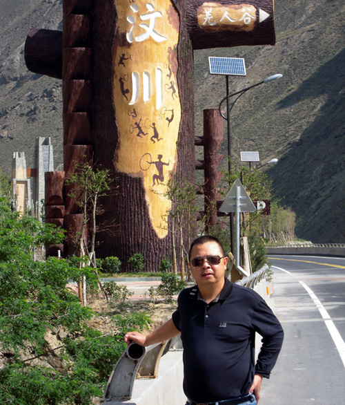 工作視查完,孫總在汶川地震中心悼念在512地震中遇難的同胞,并留影紀念