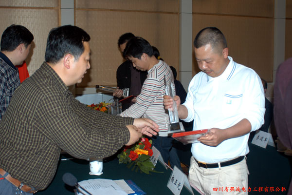 圖一:金溪電站——南充變220KV線路工程獲得2007年度優(yōu)質(zhì)工程“果州杯”稱(chēng)號(hào),領(lǐng)獎(jiǎng)現(xiàn)場(chǎng)。